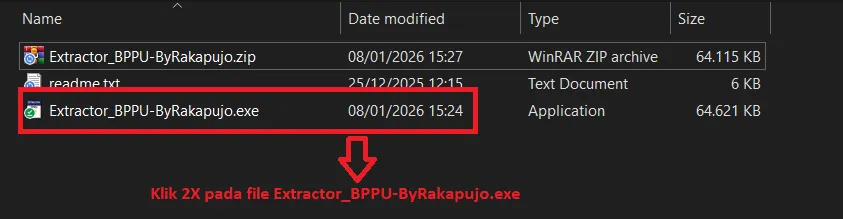 Klik 2x Pada pada Extractor_BPPU-ByRakapujo.exe