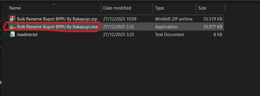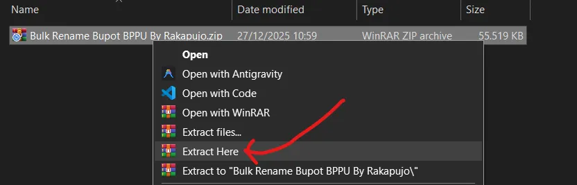 [PRODUCT:cmkb9ycuj00045nf03qah8ddd]Extract FIle Bulk Raname Bupot BPPU ByRakapujo.zip yang sudah di download ke folder sesuai pilihan anda