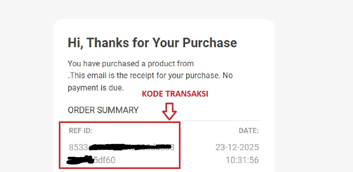 Catat untuk Kode Transaksi Dari LYNK.ID yang di kirim via email