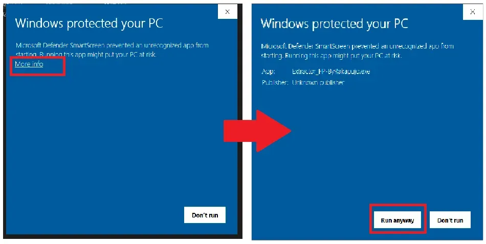 jika muncul peringatan windows Defender seperti di bawah ini Klik "More Info" lalu klik "Run Anyway"