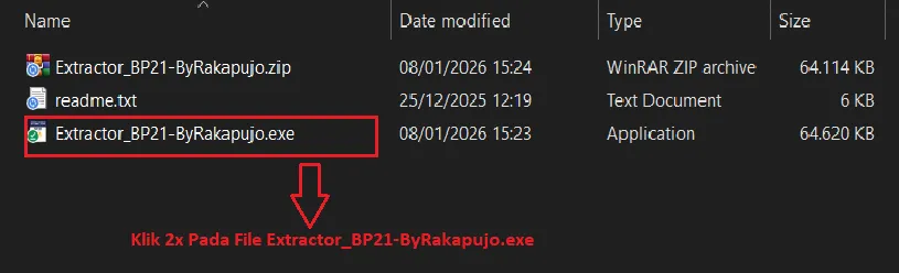 Klik 2x Pada pada Extractor_BPPU-ByRakapujo.exe