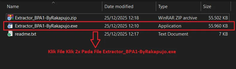 Klik 2x Pada pada Extractor_BPPU-ByRakapujo.exe
